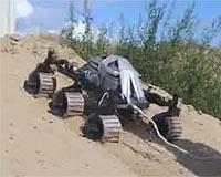 Tucson AZ (SPX) Aug 11, 2008NASA's Phoenix Mars Lander has continued studies of its landing site by widening a trench, making overnight measurements of conductivity in the Martian soil and depositing a sample of surface soil into a gap between partially opened doors to an analytical oven on the lander. Phoenix's robotic arm delivered soil Thursday from a trench informally named "Rosy Red" through a narrow opening to ... more U.S. military use of robots increases