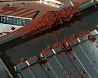 Pasadena CA (SPX) Aug 13, 2008Vibration of the screen above a laboratory oven on NASA's Phoenix Mars Lander on Saturday, Aug. 9, succeeded in getting enough soil into the oven to begin analysis. Commands were sent for the lander's Thermal and Evolved-Gas Analyzer (TEGA) to begin analysis Sunday of the soil sample from a trench called "Rosy Red." Phoenix's robotic arm delivered soil Thursday from the Rosy Red trench ... more