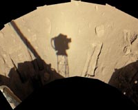 Tucson AZ (SPX) Sep 23, 2008If the robotic arm on NASA's Phoenix Mars Lander can nudge a rock aside, scientists on the Phoenix team would like to see what's underneath. Engineers who develop commands for the robotic arm have prepared a plan to try displacing a rock on the north side of the lander. This rock, roughly the size and shape of a VHS videotape, is informally named "Headless." "We don't know whether we ... more |
