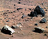Pasadena CA (SPX) Aug 31, 2009Opportunity is continuing its contact investigation of the 70-centimeter (28-inch) meteorite called "Block Island." On Sol 1981 (Aug. 20, 2009), the rover performed a very small rotation that moved the robotic arm (instrument deployment device, or IDD) in azimuth to reach new targets on the meteorite. On the next sol, the IDD collected a stack of microscopic imager (MI) images of ... more Japan robotics experts unveil sci-fi wheelchair
