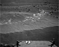 Dampier, Australia (AFP) March 28, 2010The heavy clank of machinery rings out across a seemingly deserted Outback mine site as an invisible satellite signal fires Rio Tinto's production line into motion. Massive stackers and reclaimers begin the task of sifting through rust-coloured piles of rich iron ore, readying them for the rail journey hundreds of kilometres from mine to port. It's an industrious scene - with hardly a l ... more Mars Rover Examines Odd Material At Small, Young Crater