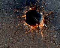 ![]() Color View From Orbit Shows Mars Rover Beside Crater NASA's Mars Exploration Rover Opportunity has nearly completed its three-month examination of a crater informally named "Santa Maria," but before the rover resumes its overland trek, an orbiting cam ... more | .. |
