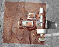 ![]() Opportunity Studies Chester Lake Rock Outcrop Opportunity is in position at a target called "Chester Lake" at Cape York on the rim of Endeavour crater. On Sol 2710 (Sept. 8, 2011), the rover pumped forward just over a meter (3 feet) to pu ... more | .. |