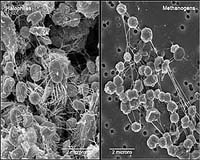 Houston TX (JSC) Mar 28, 2008 Could microbial life exist inside Enceladus, where no sunlight reaches, photosynthesis is impossible and no oxygen is available? To answer that question, we need look no farther than our own planet to find examples of the types of exotic ecosystems that could make life possible on Saturn's geyser moon. The answer appears to be, yes, it could be possible. It is this tantalizing potential that brings us back to Enceladus for further study. In recent years, life forms have been found on Earth that thrive in places where the sun doesn't shine and oxygen is not present because no photosynthesis takes place. Microbes have been discovered that survive on the energy from the chemical interaction between different kinds of minerals, and others that live off the energy from the radioactive decay in rocks. The ecosystems are completely independent of oxygen or organic material produced by photosynthesis at Earth's surface. These extraordinary microbial ecosystems are models for life that might be present inside Enceladus today. There are three such ecosystems found on Earth that would conceivably be a basis for life on Enceladus. Two are based on methanogens, which belong to an ancient group related to bacteria, called the archaea -- the rugged survivalists of bacteria that thrive in harsh environments without oxygen. Deep volcanic rocks along the Columbia River and in Idaho Falls host two of these ecosystems, which pull their energy from the chemical interaction of different rocks. The third ecosystem is powered by the energy produced in the radioactive decay in rocks, and was found deep below the surface in a mine in South Africa. So the evidence points to the feasibility of life in Enceladus. But how would it get its start? A major problem in answering that question is that we don't know how life originated on Earth, nor have we been able to reproduce Earth's first spark of life in the laboratory. But here's the good news: there are a lot of theories for how life originated on Earth. Now the question is -- do they apply to Enceladus? Two of the theories for the origin of life on Earth do seem to apply to Enceladus--the "primordial soup" theory and the deep sea vent theory.