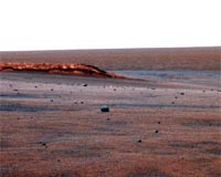 Pasadena CA (SPX) Nov 05, 2007 Opportunity is healthy, with energy levels ranging from about 450 watt-hours to 475 watt-hours (100 watt-hours is the amount of electricity needed to light a 100-watt bulb for one hour). Recently, Opportunity was temporarily unable to send scientific data to Earth because the Odyssey orbiter experienced a computer crash and went into "safing" mode. While in safing mode, the spacecraft shuts off unnecessary power loads, orients itself for maximum sunlight to the solar arrays, switches to communication modes most likely to receive commands from Earth, and basically stops all unnecessary activity while waiting for the folks back home to fix it and put it back in service. While in safing mode, Odyssey did not send communications from either Mars rover. Opportunity continued to collect as much science as possible while waiting for Odyssey to be fixed. After Odyssey was back in service, Opportunity began making up for lost time. Following a series of "toe dips," during which the rover drove a short way into "Victoria Crater" and backed out again, then drove a little farther and backed out again, Opportunity began examining the crater's interior. Victoria Crater is interesting because it affords a chance to study rock layers down to a depth of about 70 meters (230 feet) below the surrounding surface. The modern surface isn't the original surface -- it has been altered by an incoming meteor. When a meteor strikes, it throws up a huge amount of debris that falls back around the crater and creates an "ejecta blanket." This blanket is thickest near the crater rim and thinnest farther away from the crater. Below Victoria's raised rim is a light-colored band nicknamed the "bathtub ring." Scientists hypothesize that this band is the dividing line between the original surface and the ejecta blanket above it. Opportunity has now reached this area -- but not without difficulty. To reach the ring, Opportunity drove across a slope of about 25 degrees, nearly the maximum allowable tilt for the rover. The rover approached the ring on sol 1302 (Sept. 22, 2007) and then partially drove and partially slipped into closer position. On sol 1305 (Sept. 25, 2007), the rover unstowed the robotic arm and began studying the rocks that make up the top, or "Alpha," layer of the ring. Below that are two more layers, known as "Beta" and "Gamma," respectively. Halfway through the last short drive of about 20 centimeters (8 inches), Opportunity automatically stopped when the rover violated the tilt limit. As a result, the rover drove laterally about 10 centimeters (4 inches) and then slid downslope 10 centimeters (4 inches). Subsequent analysis suggested that one of the downslope wheels rolled off a slight curb, producing a jolt that caused the rover to slip. Images showed that the rover had stopped on a hard outcrop of rock rather than sand or soil and was unlikely to slip farther. Given the steep slope, Opportunity was extremely careful about moving the robotic arm. Before placing it on Alpha Layer, Opportunity moved the arm out, to the left, and to the right, while also checking for any vehicle motion with both the inertial measurement unit and cameras. The first rock target was dubbed "Steno." Opportunity continued to conduct untargeted remote sensing by, among other things, measuring Tau, or atmospheric opacity, several times each Martian day, or sol. Now that the dust storms are over, the dust is settling. How fast it settles is of both scientific and engineering interest because it affects solar energy levels. Opportunity also periodically checked deposition and movement of dust on the panoramic camera mast assembly and solar arrays. This provides data for estimating wind directions and speeds, dust particle sizes, and dust composition. Opportunity performed two "Quick Fine Attitude" checks. These are calibration activities that compensate for drift, or changes in time, in the inertial measurement unit. The unit uses gyroscopes and accelerometers to estimate the rover's motion, from which its position can be calculated. However, the gyroscopes show a slight change in attitude while the rover is still. (Older, mechanical gyroscopes drifted because of friction; newer, electronic gyroscopes drift for more complex reasons.) The attitude checks compute where the sun should be based on the current time and the rover's movement and then compares this to the actual location of the sun in images from the panoramic camera. The difference forms the basis of the attitude correction for the rover. Sol-by-sol summary: In addition to daily observations that included frequent measurements of atmospheric dust with the panoramic and navigation cameras, surveys of the sky and ground with the miniature thermal emission spectrometer, and checks for drift (changes with time) in the miniature thermal emission spectromeer, Opportunity completed the following activities: Sol 1301 (Sept. 21, 2007): Opportunity acquired panoramic camera images of the foreground, checked for drift in the miniature thermal emission spectrometer, checked the operation of the spectrometer, and surveyed the rover's external calibration target with the spectrometer. Before going into a deep sleep, the rover surveyed the horizon at low sun with the panoramic camera. The next morning, Opportunity monitored dust on the rover mast. Sol 1302: Opportunity stowed the robotic arm, drove toward Alpha Layer, acquired images with the hazard avoidance cameras just prior to and after completing the drive, and completed a "quick fine attitude" update to confirm the rover's exact location. The rover unstowed the robotic arm, acquired post-drive images with the navigation camera, and acquired panoramic camera images of the work volume (the area reachable by instruments on the robotic arm). After that, Opportunity went into a deep sleep. Sol 1303: Opportunity assessed the external calibration target with the miniature thermal emission spectrometer, reca