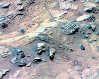 Pasadena CA (SPX) Oct 31, 2007 Spirit is healthy and continues to investigate "Home Plate." After completing extensive studies of "Site 3" using the Moessbauer spectrometer and other instruments, the rover proceeded toward "Site 4." Meanwhile, it's already time for Spirit to start thinking about winter again. Over the coming weekend, the rover was scheduled to acquire long-baseline stereo images of Home Plate and surrounding areas in search of a safe winter haven. The grinding encoder on Spirit's rock abrasion tool appears to have suffered the same fate as that of Spirit's twin, Opportunity, on the other side of Mars. An investigation is under way, but all indications are that activities using the rock abrasion tool will now require two Martian days, or sols. On sol 1346 (Oct. 16, 2007), Spirit drove approximately 10 meters (33 feet) toward Site 4 and added another 12 meters (39 feet) of driving on sol 1347 (Oct. 17, 2007). In addition to receiving morning instructions directly from Earth via the high-gain antenna, returning data in the evening at UHF frequencies via the Odyssey orbiter, measuring atmospheric dust levels (known as tau measurements) with the panoramic camera, and surveying the sky and ground with the miniature thermal emission spectrometer, Spirit completed the following activities: Sol 1343 (Oct. 13, 2007): Spirit restarted the Moessbauer spectrometer and collected data for 22 hours with the instrument from a target called "Humboldt Peak." The rover acquired remote data from a rock target known as "Mt. Eolus" with the miniature thermal emission spectrometer and a 6-by-1 image mosaic with the panoramic camera. Sol 1344: Spirit restarted the Moessbauer spectrometer and resumed data collection from Humboldt Peak for 23 hours. The rover acquired spot images of the sky and a 4-by-1 image mosaic with the panoramic camera and collected remote data from a rock known as "Pikes Peak" using the miniature thermal emission spectrometer. Sol 1345: Spirit resumed collecting Moessbauer data from Humboldt Peak for another 23 hours. The rover acquired remote data from a target dubbed "Mt. Sneffels" with the miniature thermal emission spectrometer and spot images of the sky with the panoramic camera. Spirit monitored dust on the rover mast assembly. Sol 1346: Spirit ran tests on the rock abrasion tool and stowed the robotic arm before taking pre-drive images with the panoramic camera and driving about 10 meters (33 feet) toward Site 4 on Home Plate. The rover acquired a 5-by-1, post-drive image mosaic with the navigation camera as well as a 4-by-1 mosaic with the panoramic camera. The rover took spot images of the sky and foreground images with the panoramic camera. Sol 1347 (Oct. 17, 2007): Spirit conducted a pre-drive survey of the rover's surroundings with the panoramic camera and drove another 12 meters (39 feet) toward Home Plate Site 4. The rover acquired a 7-by-1, post-drive image mosaic with the navigation camera. Spirit also took images of dust in the sky, conducted a survey of rock clasts, and acquired images of a rock target called "Conundrum Peak" using the panoramic camera. Odometry: As of sol 1347 (Oct. 17, 2007), Spirit's total odometry was 7,286 meters (4.5 miles). Community Email This Article Comment On This Article Related Links Mars News and Information at MarsDaily.com Lunar Dreams and more
